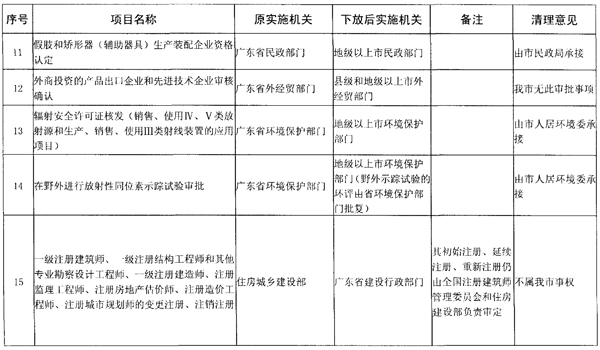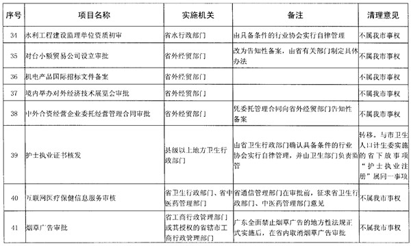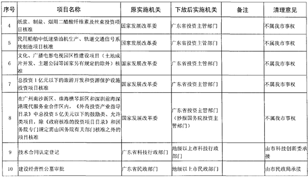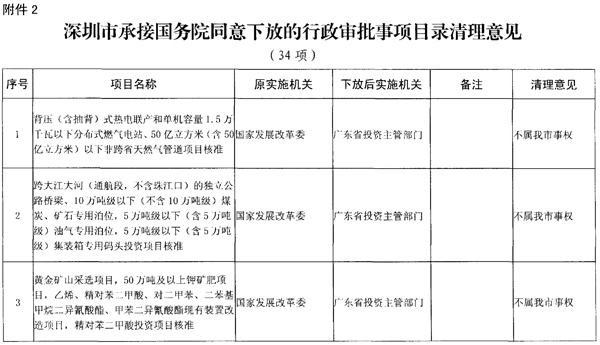 2.深圳市承接国务院同意下放的行政审批事项目录清理意见(34项)