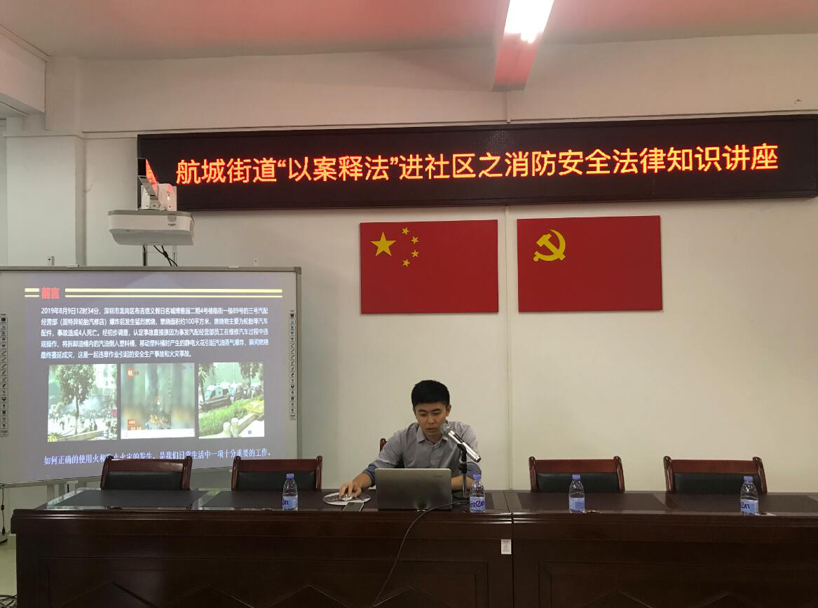 为普及消防安全知识,提高社区居民的消防安全意识,减少社区消防安全隐患,进一步提高社区居民的自防自救能力,近日航城街道普法办、航城街道司法所在黄麻布社区开展“以案释法”消防安全知识讲座。
