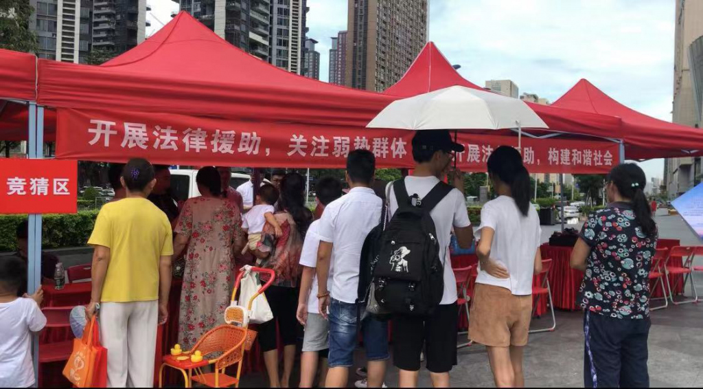 近日,宝安区司法局、宝安区公共法律服务中心、新安街道司法所在宝安中心区壹方城举办纪念国务院《法律援助条例》颁布实施 16 周年暨《广东省法律援助条例》颁布实施 20 周年宣传活动。宝安区司法局各党支部党员代表、工作人员及法援律师共同参加活动,在现场与市民 " 面对面 " 沟通,提供法律援助志愿服务。