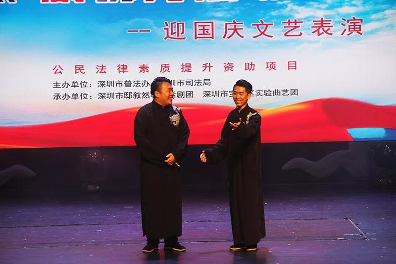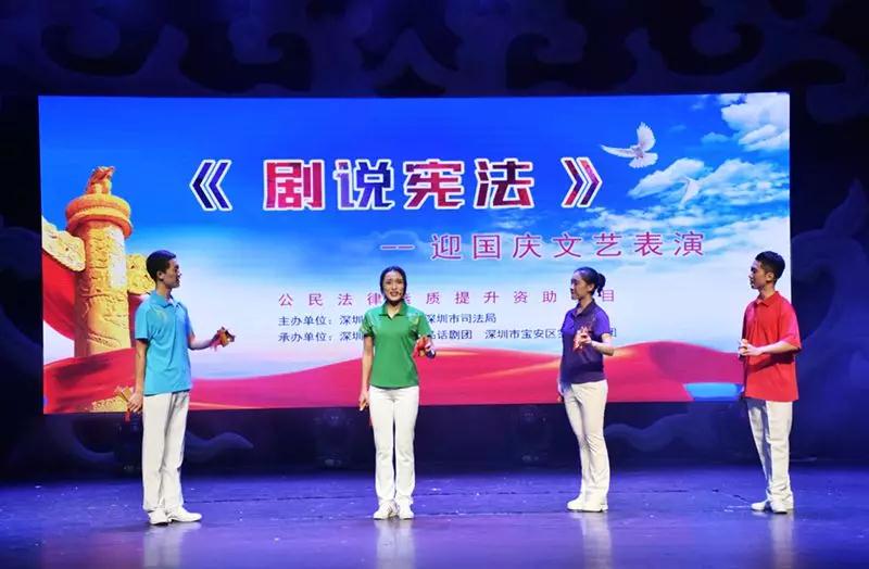 8月26日晚,罗湖区文化馆09剧场内掌声雷动,热闹非凡,不时传出观众的欢声笑语。当晚,由深圳市普法办、深圳市司法局支持的深圳市公民法律素质提升资助项目——《剧说宪法》迎国庆法治文艺演出在这里举行。