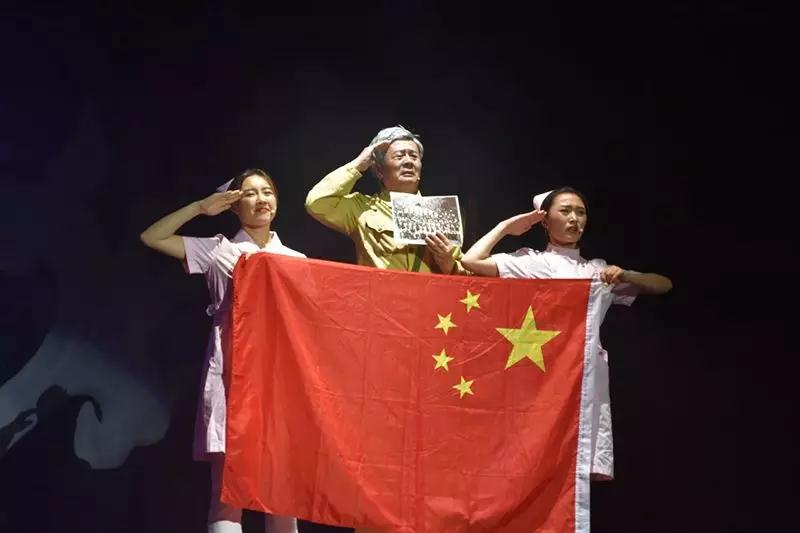 演出结尾,话剧团还以一个爱国情景剧,向中华人民共和国成立70周年献礼。