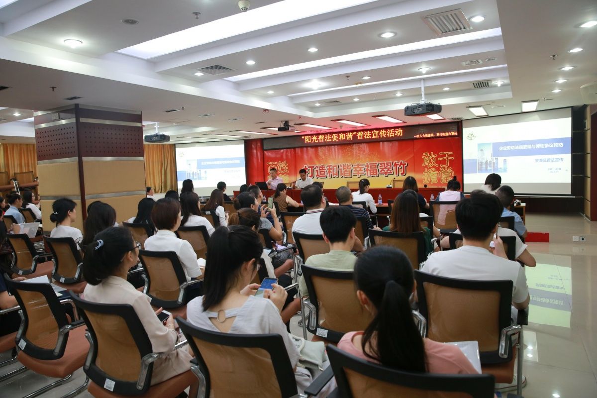 为进一步规范企业劳动用工行为,构建辖区和谐的劳动关系,8月8日,罗湖区翠竹街道联合罗湖区人力资源局在街道办事处三楼会议室开展“阳光普法促和谐”普法宣传活动。本次活动邀请到全国律师协会劳动与社会保障法业务委员会委员沈威律师担任讲师,为辖区企业开展企业劳动法规管理与劳动争议预防的宣讲培训。
