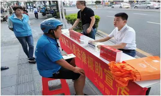 7月18日,大鹏办事处司法所举办了面向外来务工人员的法律援助服务宣传活动。活动中,工作人员通过设立法律咨询点、悬挂宣传横幅等方式结合《中华人民共和国劳动法》、《法律援助条例》,重点宣传法律援助相关工作。