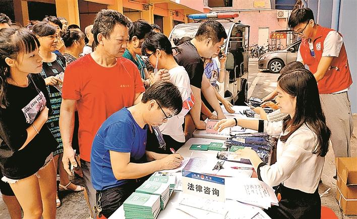 活动现场,普法志愿者向企业的员工发放了《劳动合同法》《反家暴法》《中华人民共和国宪法》《婚姻法》《治安管理处罚法》等与生活息息相关的法律资料共计800余份。黄律师针对来深建设者的法律意识普遍比较薄弱这一情况,就如何依法维护自身权益进行法治宣讲,为来深建设者提供零距离、面对面的法律服务。“这次法治宣传活动让我更加懂得如何通过合法、有效的方式维护自身合法权益,希望可以多开展此类宣传活动。”员工赵大姐说。