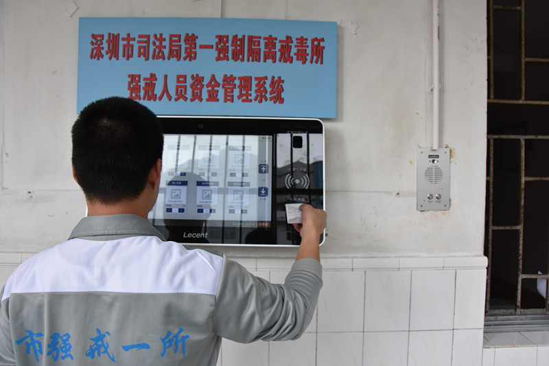 深圳一所是全国首例采用戒毒人员个人资金及消费智能管理系统的司法行政戒毒所。该智能系统由资金消费管理系统、所内管理智能终端机(触摸屏)和资金消费管理云平台三个子系统组成,实现全业务无现金化和专业化的进、销、存管理功能。戒毒人员可以通过指纹、指静脉等方式登陆安装在每层宿舍楼的终端机,随时在终端机上点击消费,查询到每笔资金的收支明细,戒毒人员资金账户可根据不同来源及用途分类为多个独立子账户。实现戒毒人员消费、资金控制管理自动化,戒毒人员家属可通过网上银行给在所戒毒人员实时汇款的功能。民警可通过后台建立戒毒人员分级处遇消费控制体系,实现民警、戒毒人员查询数据信息业务自助化。