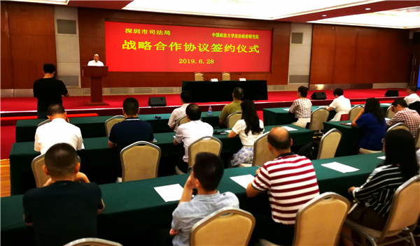 6月28日上午,深圳市司法局与中国政法大学法治政府研究院签署战略合作框架协议。