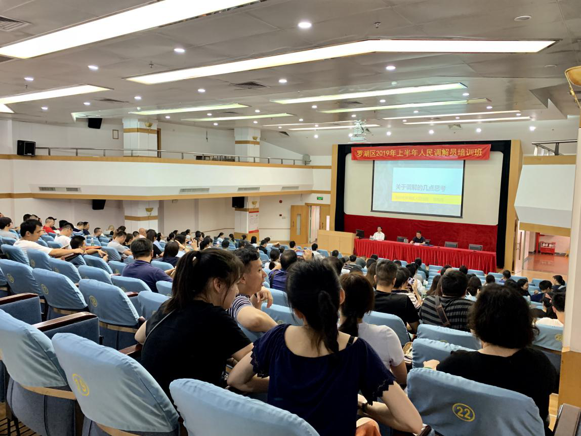 6月21日下午,罗湖区司法局2019年全区人民调解员培训班在区委党校正式开班,全区各级调委、区整形美容调委、区旅游文化调委、区婚调委及驻点派出所调解室共约200名调解员参加了此次培训。