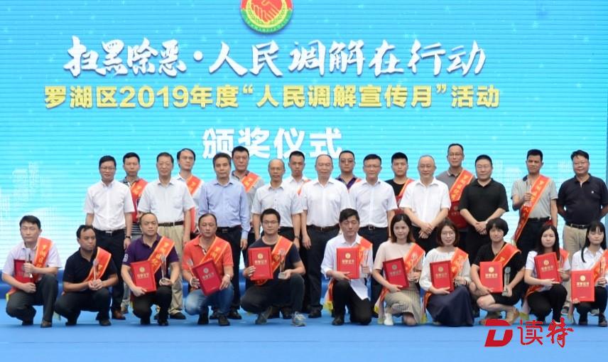 罗湖区司法局局长谌小林宣读了表彰决定,充分肯定罗湖广大人民调解员高度的社会责任感和事业心;与会领导为8名“金牌调解员”、21名“优秀人民调解员”颁奖,金牌调解员翟龙作为人民调解员获奖代表发言,充分展示了罗湖人民调解员风采。