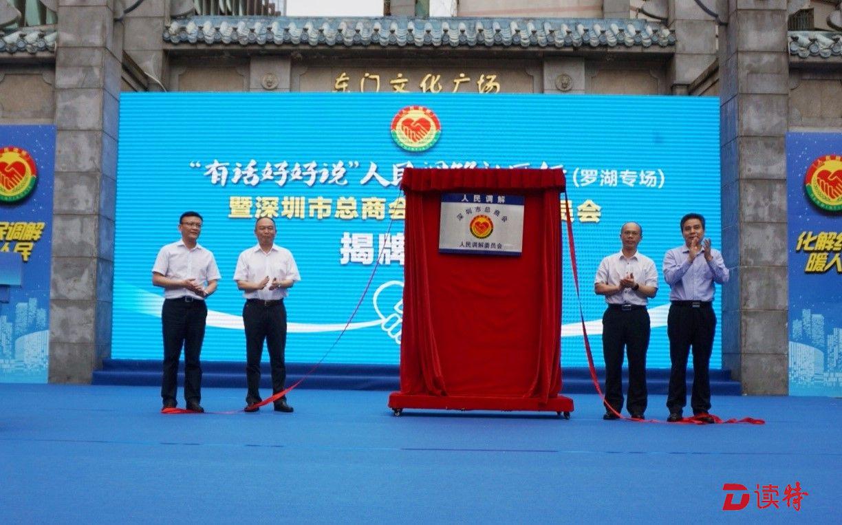 活动上,深圳市总商会人民调解委员会在罗湖区主会场揭牌成立,深圳市总商会人民调解委员会的成立将充分发挥深圳市总商会的组织优势和人民调解的基础性作用,预防化解非公有制经济领域矛盾纠纷,维护社会和谐稳定,为深圳良好营商环境贡献更多的调解力量。