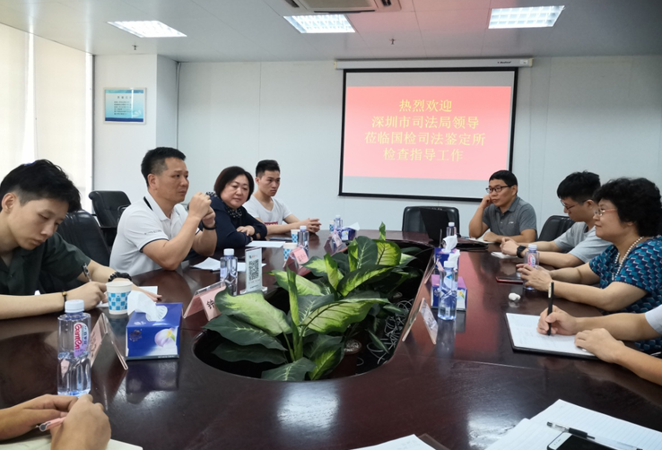 2019年5月23日,深圳市司法局陈郑兴巡视员、司法鉴定办龚艳梅主任一行前往广东国检司法鉴定所调研。