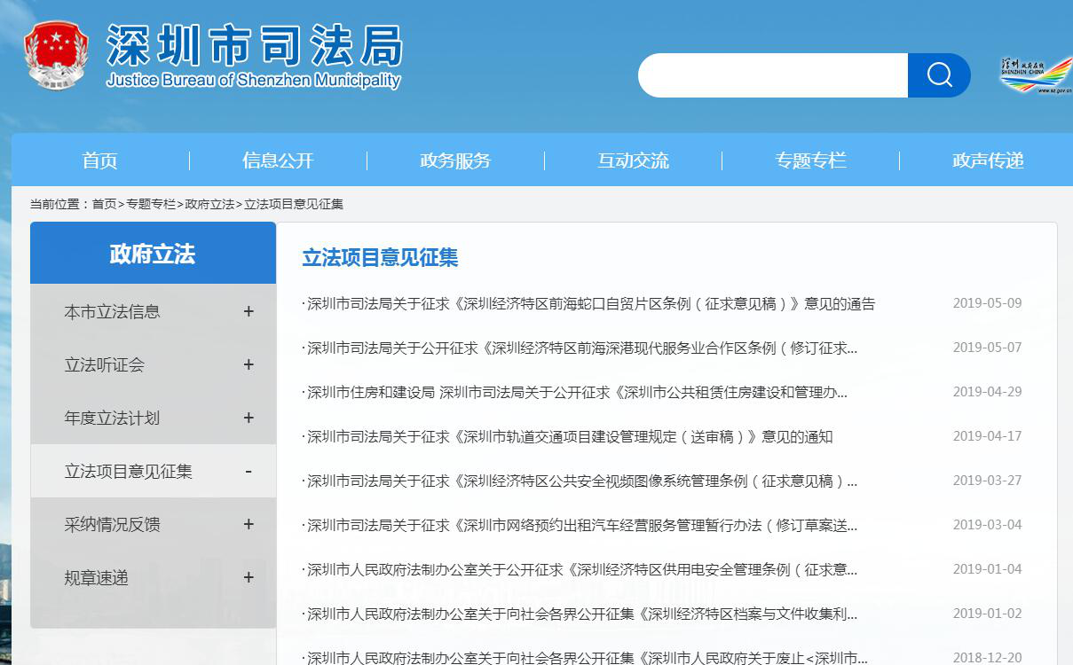 近两年来,市司法局积极推动《深圳经济特区食品安全监督条例》《深圳市公共信用信息管理办法》《深圳经济特区知识产权保护条例》等多项重点领域法规、规章顺利出台,以立法推动全方位改革。