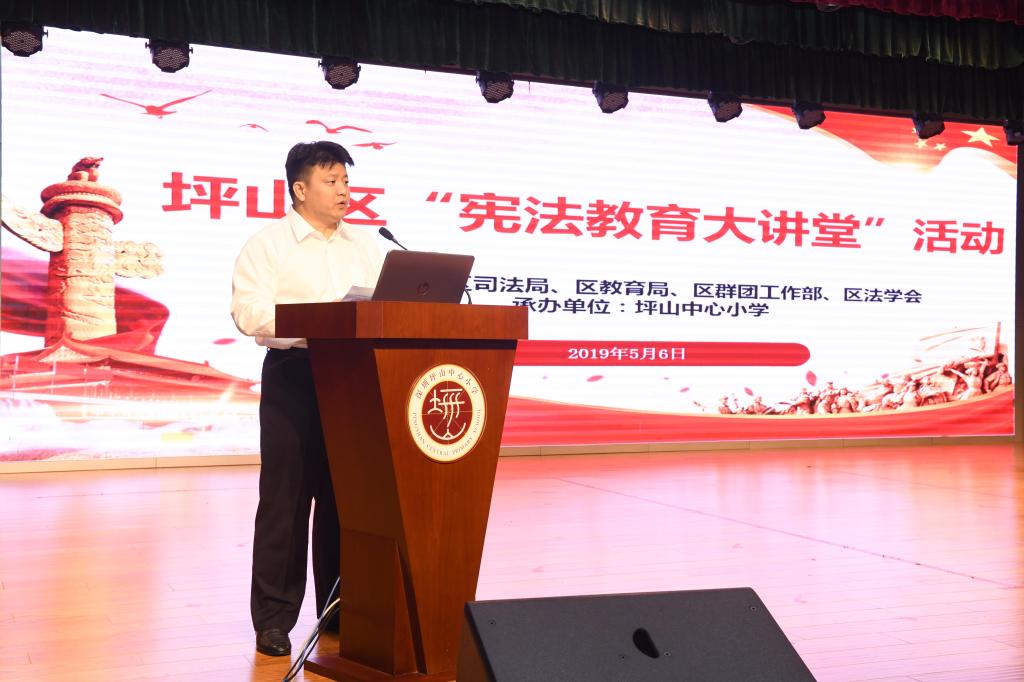 为进一步增强青少年宪法意识,让宪法精神牢牢根植于我区青少年心中,按照省、市有关统一部署,2019年5月6日上午,坪山区司法局联合区教育局、区群团工作部、区法学会在坪山中心小学开展坪山区“宪法教育大讲堂”活动。区委副书记、政法委书记映中同志,区司法局、区教育局、区群团工作部、区法学会相关负责同志参加了此次活动。映中同志强调了三点意见:一是要坚持正确的政治引领方向,切实增强青少年学习贯彻实施宪法的责任感和使命感;二是要夯实宪法宣传主阵地,充分发挥校园宪法教育宣传作用;三是要加强统筹联动,精心打造“宪法大讲堂”文化品牌。各相关单位要精心组织、密切配合,按照既定的工作方案开展好此次活动。