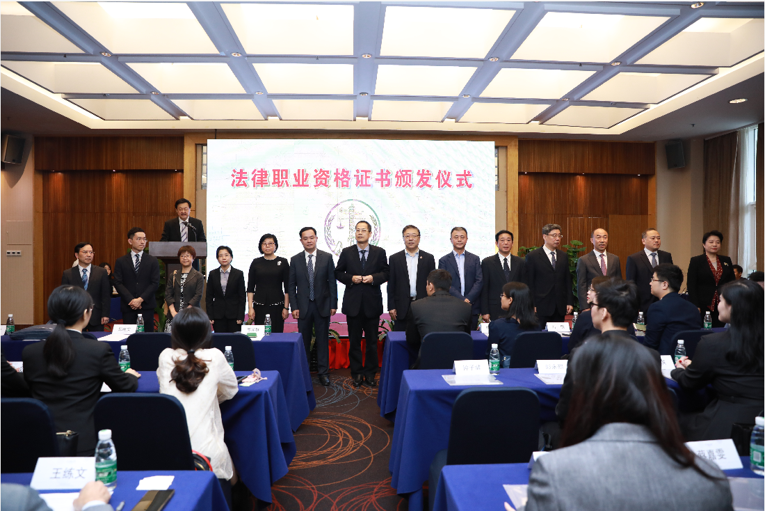 4月27日上午,司法部在深圳市为参加2018年国家统一法律职业资格考试取得合格成绩,被授予法律职业资格的53名香港居民、4名澳门居民举行法律职业资格证书颁发仪式,并进行了交流活动。