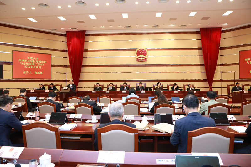 4月23至24日,深圳市六届人大常委会第三十三次会议召开。会上,深圳市司法局党委书记、局长蒋溪林列席会议,代表市政府提请审议《深圳经济特区社会治安综合治理条例》(修订一审稿)与《深圳经济特区海域保护与使用条例》(一审稿),并就议案向与会委员及代表进行说明。其中,《深圳经济特区海域保护与使用条例》(一审稿)(以下简称“《条例》一审稿”)包含实行重点海域详细规划制度、创设海洋工程报建审批流程、建立海域使用管理线制度、授权海监机构以自己名义执法等多项创新之举。