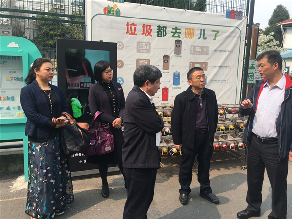 4月3日下午,考察组一行前往上海市某居民小区参观垃圾分类实施情况,与当地居委会和社区同志相互交流有关垃圾分类工作的特点、经验和困难等问题。