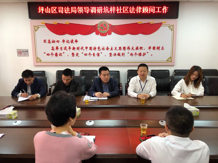4月2日上午,区司法局局长白宁同志带队到坑梓社区开展一社区一法律顾问调研工作,首先了解询问了社区法律顾问工作情况,随后与坑梓街道办事处及坑梓社区工作站开展交流座谈。