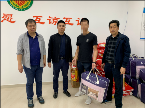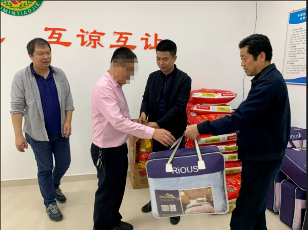2019年12月18日,平湖街道司法所组织辖区内部分家庭较困难的社区矫正对象开展了以“关爱帮扶,春节送温暖”为主题的慰问活动,为他们送上了大米,油等生活物资,并送上春节祝福。