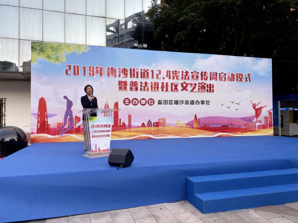 12月2日,为助力盐田区创建平安建设示范区,号召市民深入开展宪法法律学习,营造学法、知法、懂法、守法的法治社会环境,盐田区梅沙街道办开展了12.4宪法宣传启动仪式暨普法进社区文艺演出,盐田区司法局副局长解秋艳、梅沙街道办事处主任宋晖、梅沙街道办事处调研员张毅等领导出席了启动仪式。