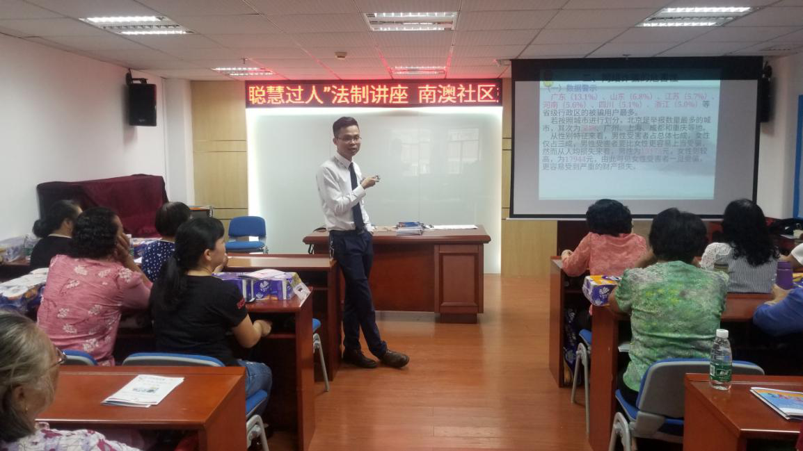 针对目前电信网络诈骗频发高发,老年人风险防范意识较弱,容易成为受害者这一现象,近日,新区政法办邀请社区法律顾问在南澳社区举办了老年人“防电信网络诈骗”普法讲座。