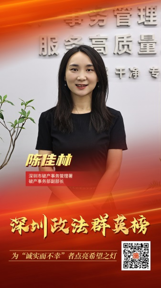 在推动改革的过程中,陈佳林发现,“个人破产涉及人民法院和多个政府部门,每个部门都有自己的工作流程和机制,对个人破产事务的高效联动处理有一个从了解到磨合、共识的过程”。为此,市破产管理署开始推动构建府院联动协调机制,着力打通部门间的对接机制和信息壁垒。陈佳林推动市破产管理署与深圳破产法庭建立了常态化的交流会商机制,推动市司法局与市民政局创建了债务人家庭经济状况信息化核对共享机制,又牵头起草了《关于破产涉住房公积金事务高效办理的实施意见》等重要文件。这些机制和文件,成为完善个人破产府院联动协调机制的关键,为个人破产案件的高效办理奠定了坚实基础。在企业破产领域,她推动落实“企业破产信息核查一件事”改革任务,实现破产企业400余项关键数据“一键核查”;推动深圳组建全国首个同时覆盖企业债务重组和个人破产公共服务的庭外重组服务中心,进一步拓宽困境市场主体经济再生的渠道。