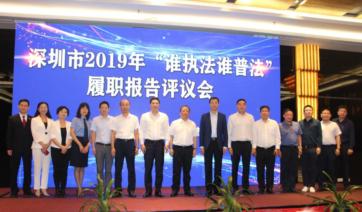 10月24日上午,深圳市召开2019年国家机关“谁执法谁普法”履职报告评议会。深圳市委常委、政法委书记余新国、司法部港澳台法律培训交流中心主任李志路、全市50个普法责任单位以及10个区(新区)司法局近140人参加会议。会议由深圳市司法局党委书记、局长蒋溪林主持。