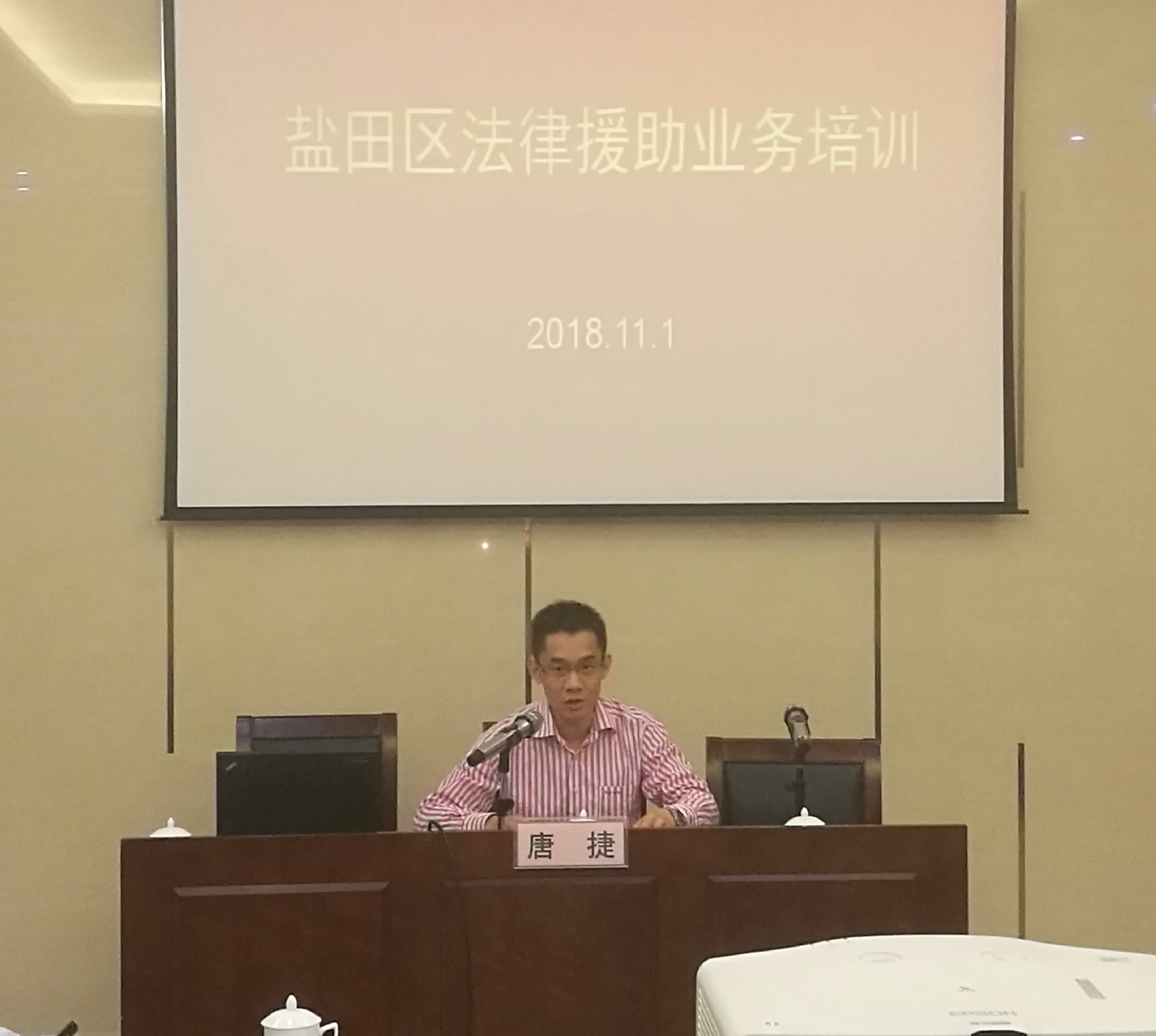盐田区法律援助办公室于11月1日至2日举办法律援助业务培训,盐田区司法局副局长唐捷出席并作了讲话。