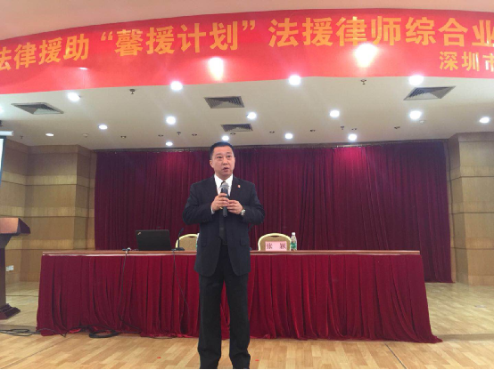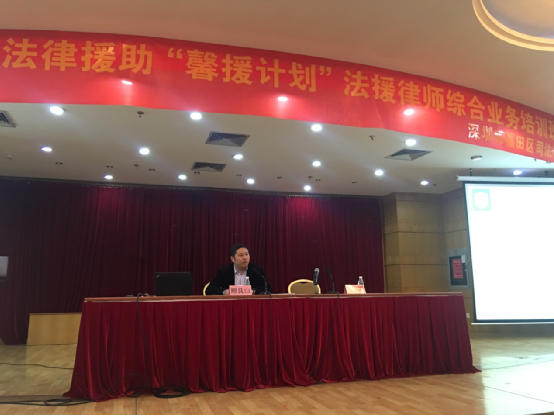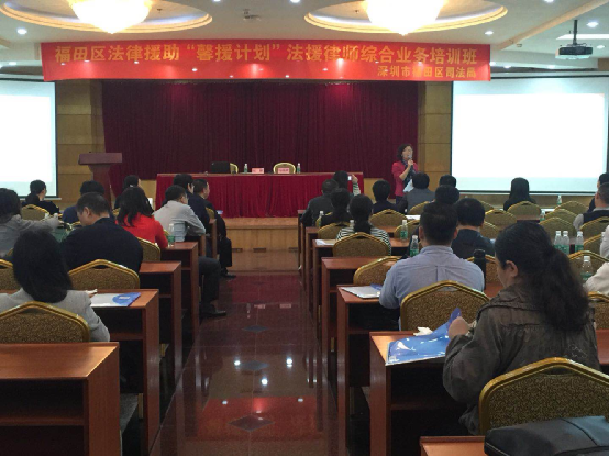 2017年11月28日、29日上午,深圳市福田区司法局“馨援计划”法援律师综合业务培训班在福田区委会堂开班授课。